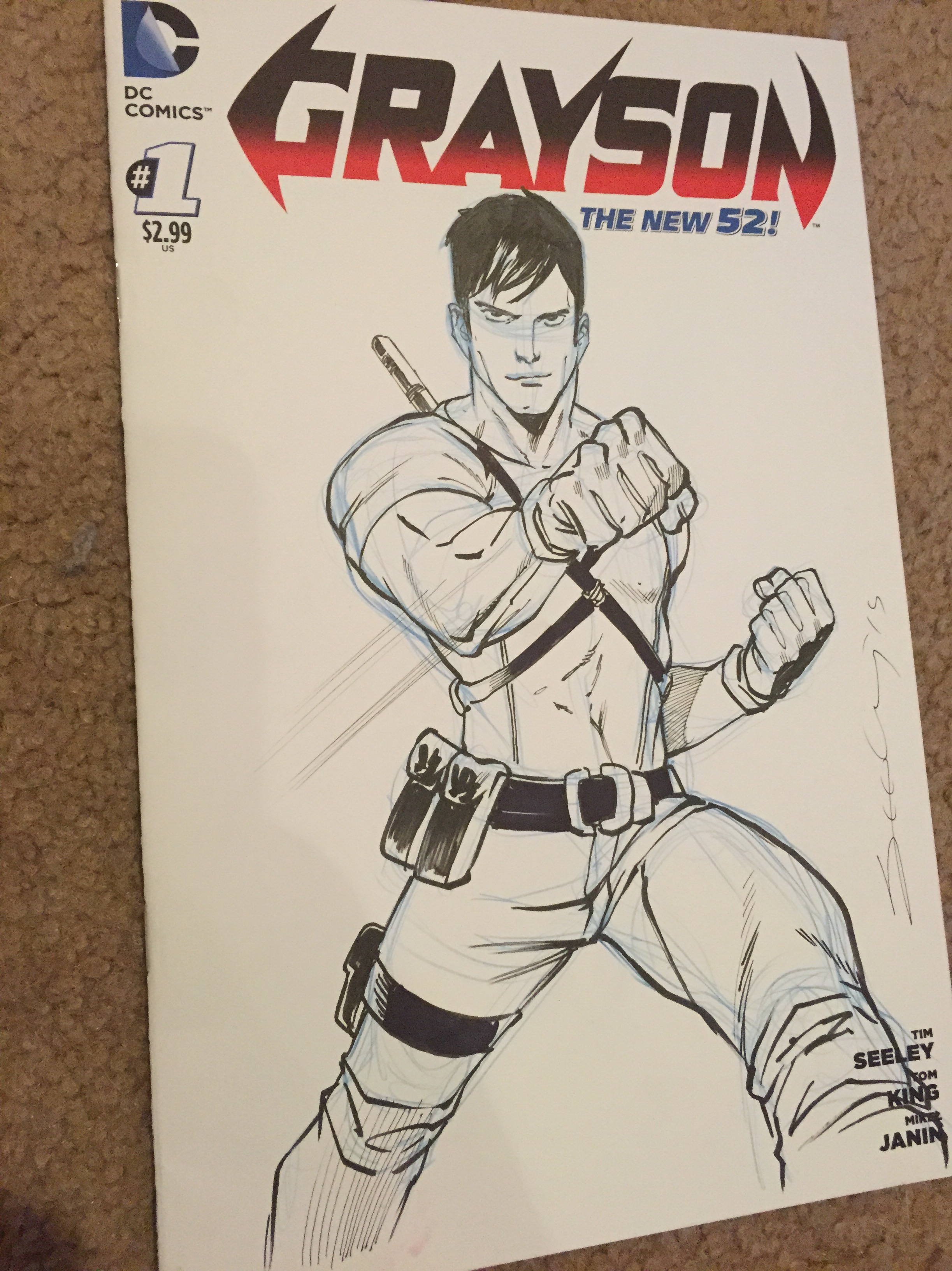 This was an original sketch from Tim Seeley of Dick Grayson. Though I am only a marginal Grayson fan, I generally like Tim Seeley quite a bit and I wanted to prioritize sketches that could go on the blank variant covers I already had. This was $40 at Rose City Comic Con, and a completely worth it purchase. Tim is incredibly nice, and does it quickly. Also a great person to talk to a little about his newer work, and I was excited to chat about his creator-owned book Revival, over at Image.