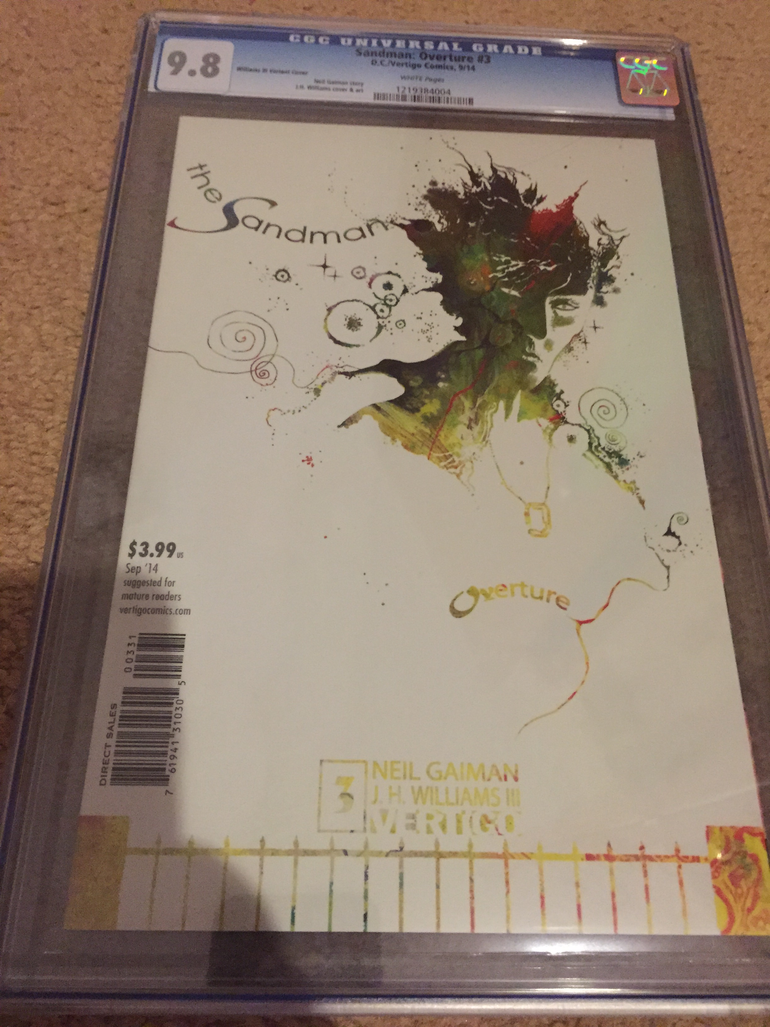 IMG_7901 Published on January 10, 2015 in Slabbin’ Them: Personal Account on the CGC Process and Current CGC CollectionFull resolution (2448 × 3264) < Previous Next > Sandman: Overture #3 CGC