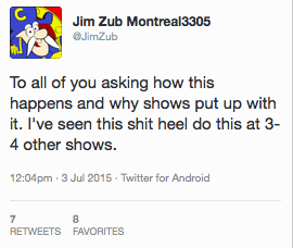 This is not the first time that people have complained about Suydam’s behavior.  The Outhousers reported a particularly difficult episode with Suydam where some small time convention planners were royally screwed by him.