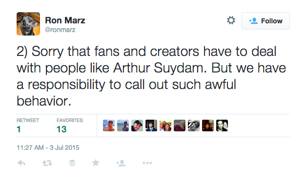 In a series of call-outs that happened online through Twitter, he was repeatedly singled out for his behavior in Montreal, and at past conventions.