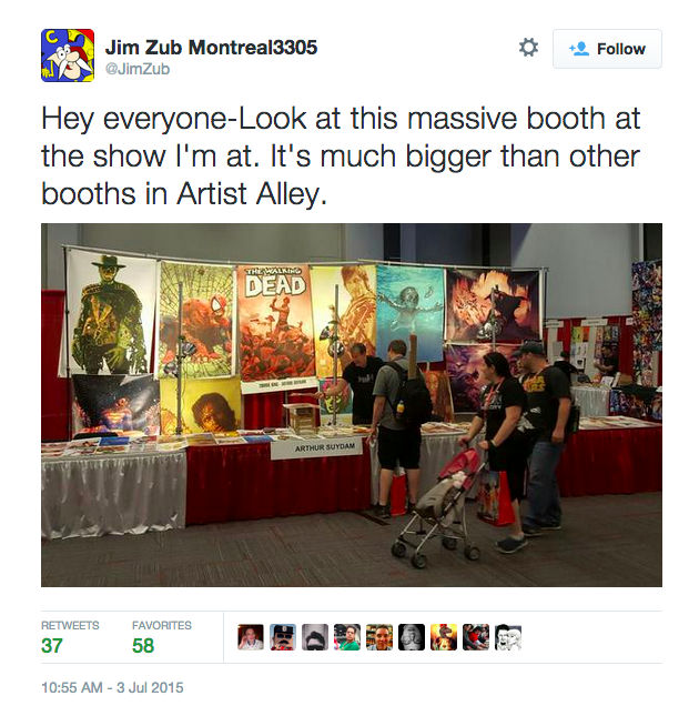 Arthur Suydam, who many know from his work on Marvel Zombies, has always been a divisive figure in the industry.  At comic cons he is known for having massive spreads where he sells prints and original art.  This, while excessive, is not really that new for comic cons, and many major artists have been set ups to sell art.  The difference is that Suydam doesn’t pay for his and instead just steals other creators’ tables.