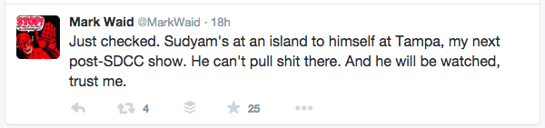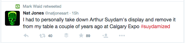 Mark Waid, who is known for his estimation of fairness in the industry and is a notoriously nice guy, had enough of Suydam’s behavior, which is common to many comic cons.