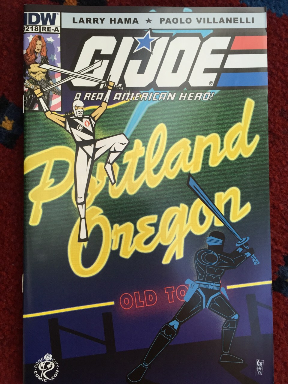 today is the first day of Rose City Comic Con 2015 and we have their exclusive variant cover of GI Joe #218. The cover, featuring the Portland Welcome to Oregon sign, was done by Jeffrey Veregge.
