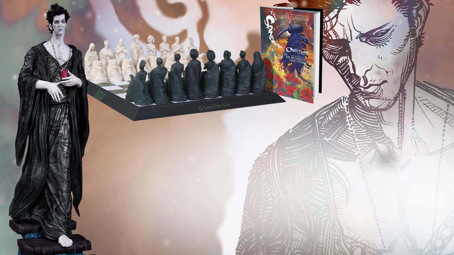 The Grand Prize of the Sandman: Overture sweepstakes is the Sandman chess set, a beautifully rendered set of piece sculptures all taken from the rich Sandman universe. The set itself runs for an incredible $485, which is because of the heavy quality and crafstmanship of it, so this is a major give away. Beyond just the main prize, there is also going to be giveaways for other contestants of a Sandman statue, the The Sandman: Overture Deluxe Edition, and the Sandman: Overture collectible poster. There is no purchase necessary, as they say, all you have to do is enter the contest to be one of the possible chosen.